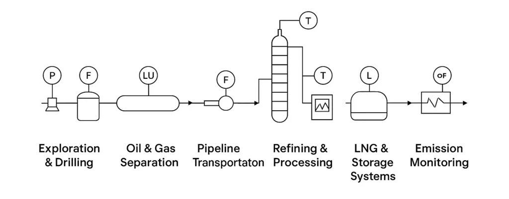Accurate field instrumentation forms the foundation of safe and efficient oil and gas operations.Across upstream, midstream, and downstream processes, precise measurement of pressure, temperature, flow, level, and gas composition supports stable operation, data consistency, and energy optimization from wellhead to refinery.